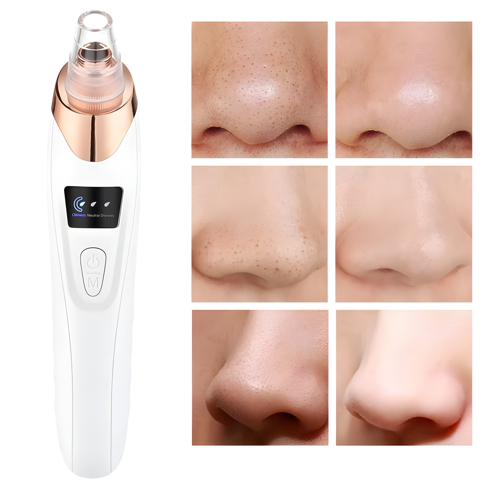 El Blackhead Remover Vacuum es una herramienta eléctrica recargable diseñada para limpiar profundamente los poros, eliminar puntos negros, espinillas, restos de maquillaje y células muertas. Su sistema de succión por vacío ayuda a mejorar el aspecto de la piel sin irritarla, ofreciendo una limpieza cómoda, rápida y efectiva en casa.